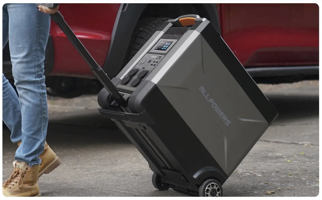 ALLPOWERS R4000 to akumulator o dużej pojemności z akumulatorem litowo-żelazowo-fosforanowym, więc możesz się obawiać, że będzie trudno go przenosić, ale nie martw się. Portable Power R4000 ma solidne kółka przypominające walizkę podróżną, więc nawet kobiety mogą go łatwo przenosić, pomimo jego wagi 99,2 funta (45 kg). Ma smukły profil ułatwiający przechowywanie i trwałą konstrukcję, która może przenosić ładunki do 45 kg na górze. ALLPOWERS R4000 spełnia rolę przenośnego akumulatora do użytku domowego, ale jest również przydatny na kempingu i podczas spania w samochodzie.