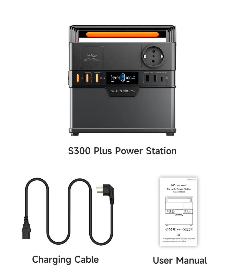 ALLPOWERS Zestaw Generatora Słonecznego 300W (S300 Plus + SP027 100W Panel Słoneczny)