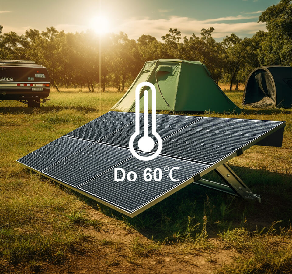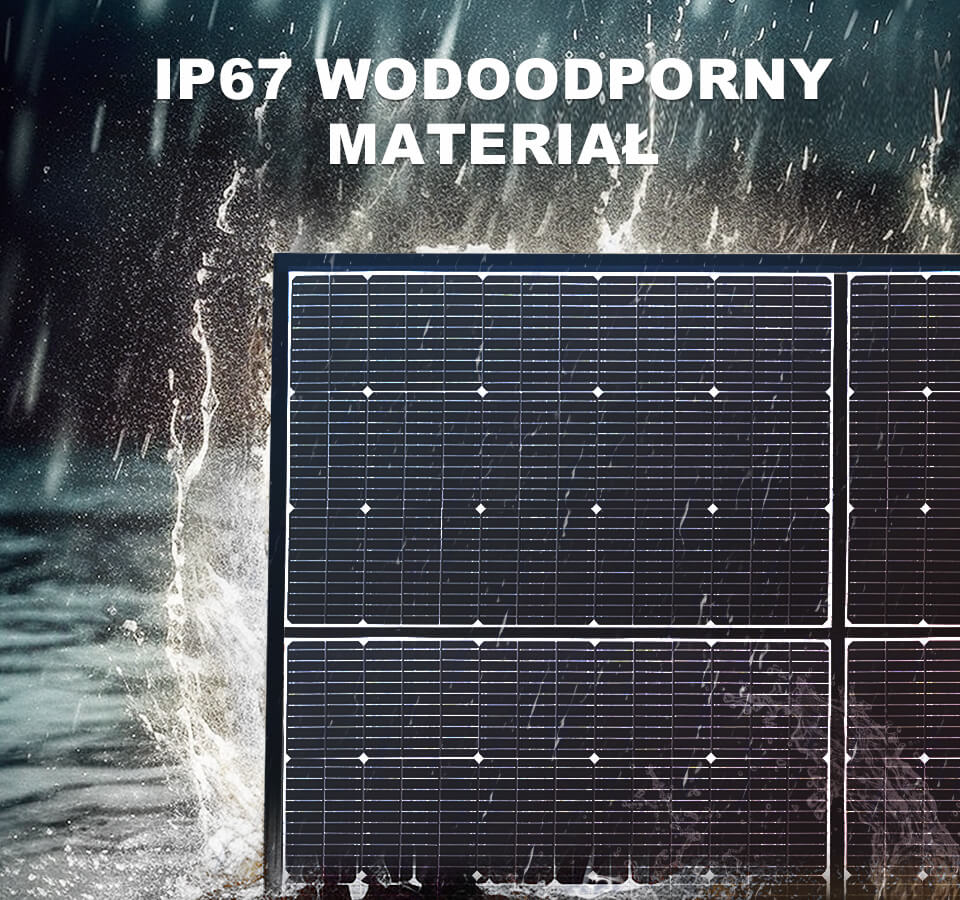 Panel słoneczny ALLPOWERS 600W wytrzymuje również ekstremalne warunki pogodowe, takie jak mróz lub upał. Składa się z wielu warstw elastycznego EVA i wytrzymałych włókien szklanych dla większej trwałości i mobilności. Posiada również klasę ochrony IP67 przed zarysowaniami, kurzem, zachlapaniem wodą lub krótkotrwałym zanurzeniem w wodzie.