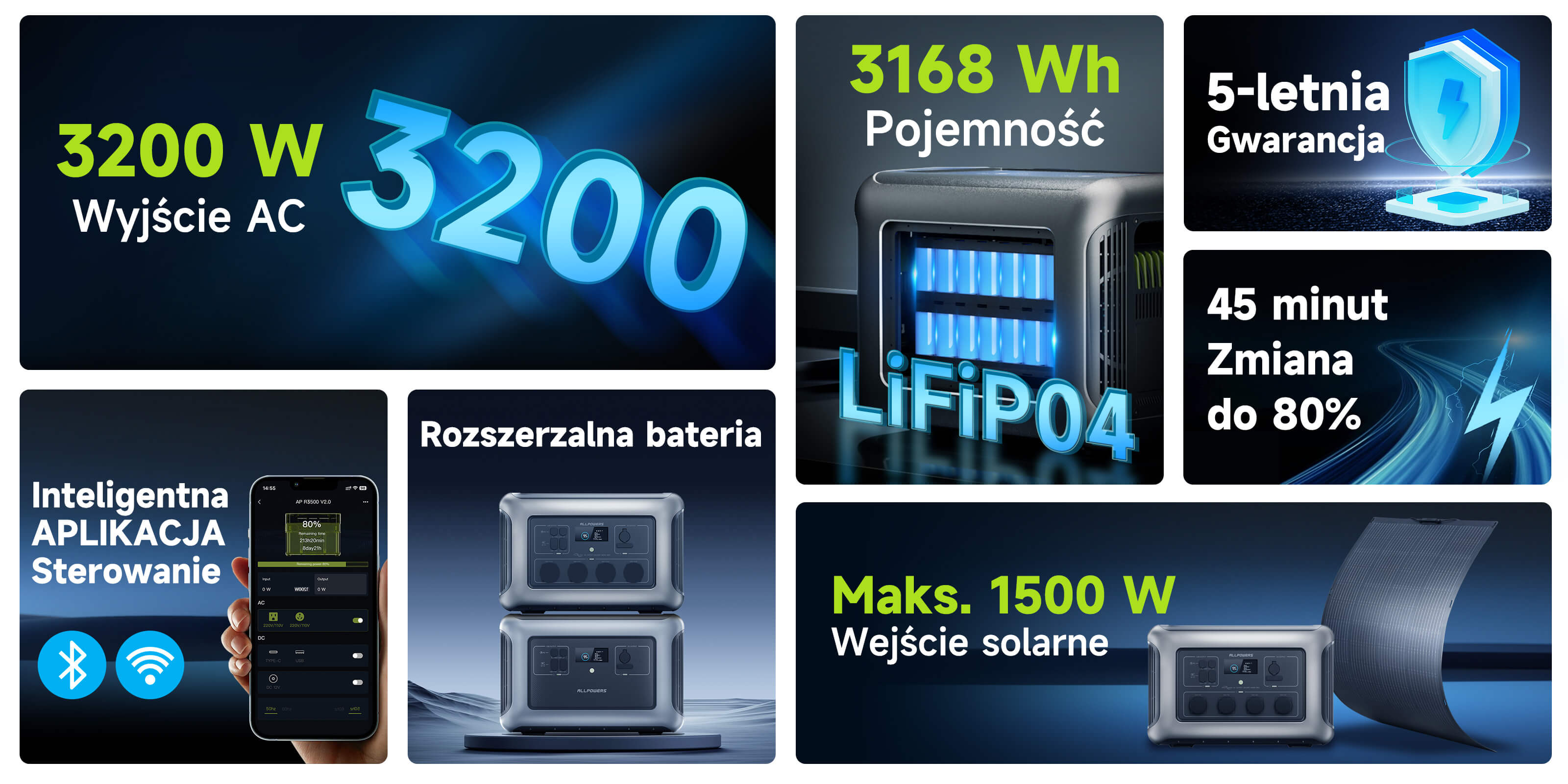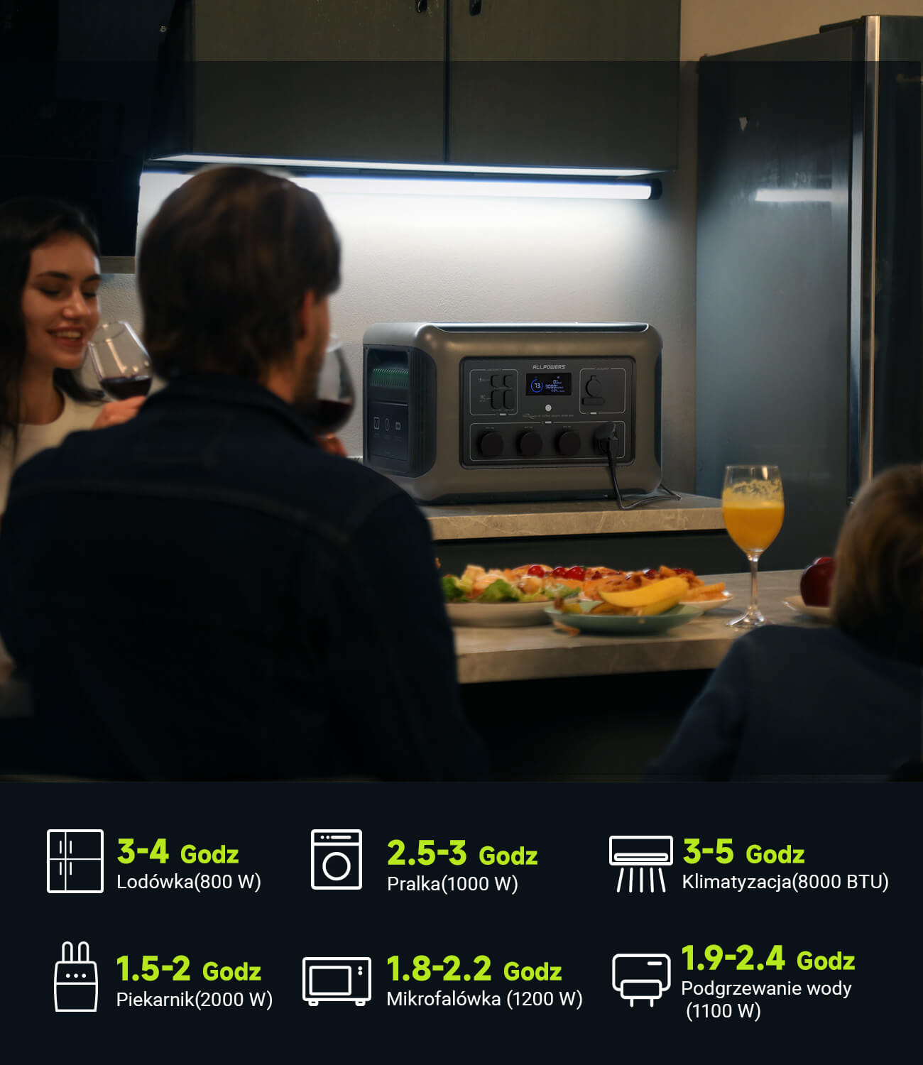 Doświadcz niezrównanej wydajności dzięki ogromnej pojemności 3168 Wh i mocnej mocy wyjściowej AC 3200 W (6000 W szczytowej). Ta potężna elektrownia jest gotowa zapewnić niezawodne zasilanie awaryjne dla Twojego domu. Niezależnie od tego, czy jest to burzliwa noc, czy planowana konserwacja, R3500 ma to, czego potrzebujesz. Utrzymuj włączone światła, sprawne urządzenia i ładuj je.