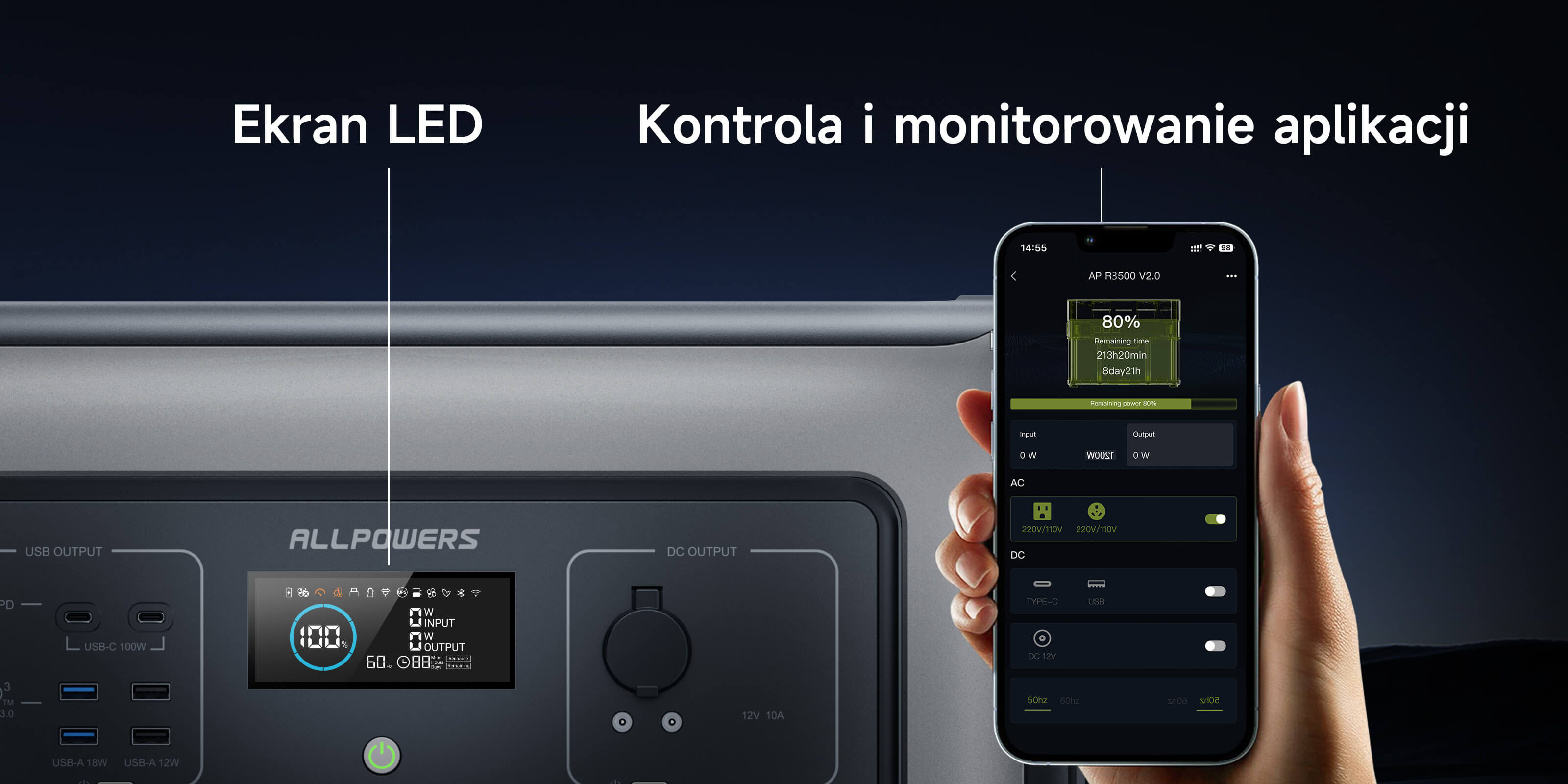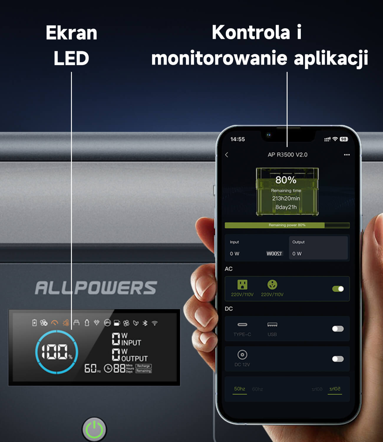 Łatwe do zrealizowania poprzez połączenie z aplikacją ALLPOWERS za pośrednictwem WIFI w celu monitorowania zużycia energii/ustawiania funkcji/pilota/aktualizacji systemu.