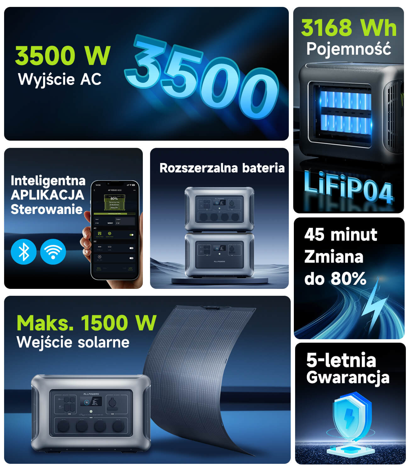 ALLPOWERS Zestaw Generatora Słonecznego 3500W (R3500+SF100 100W Elastyczny Panel Fotowoltaiczny)