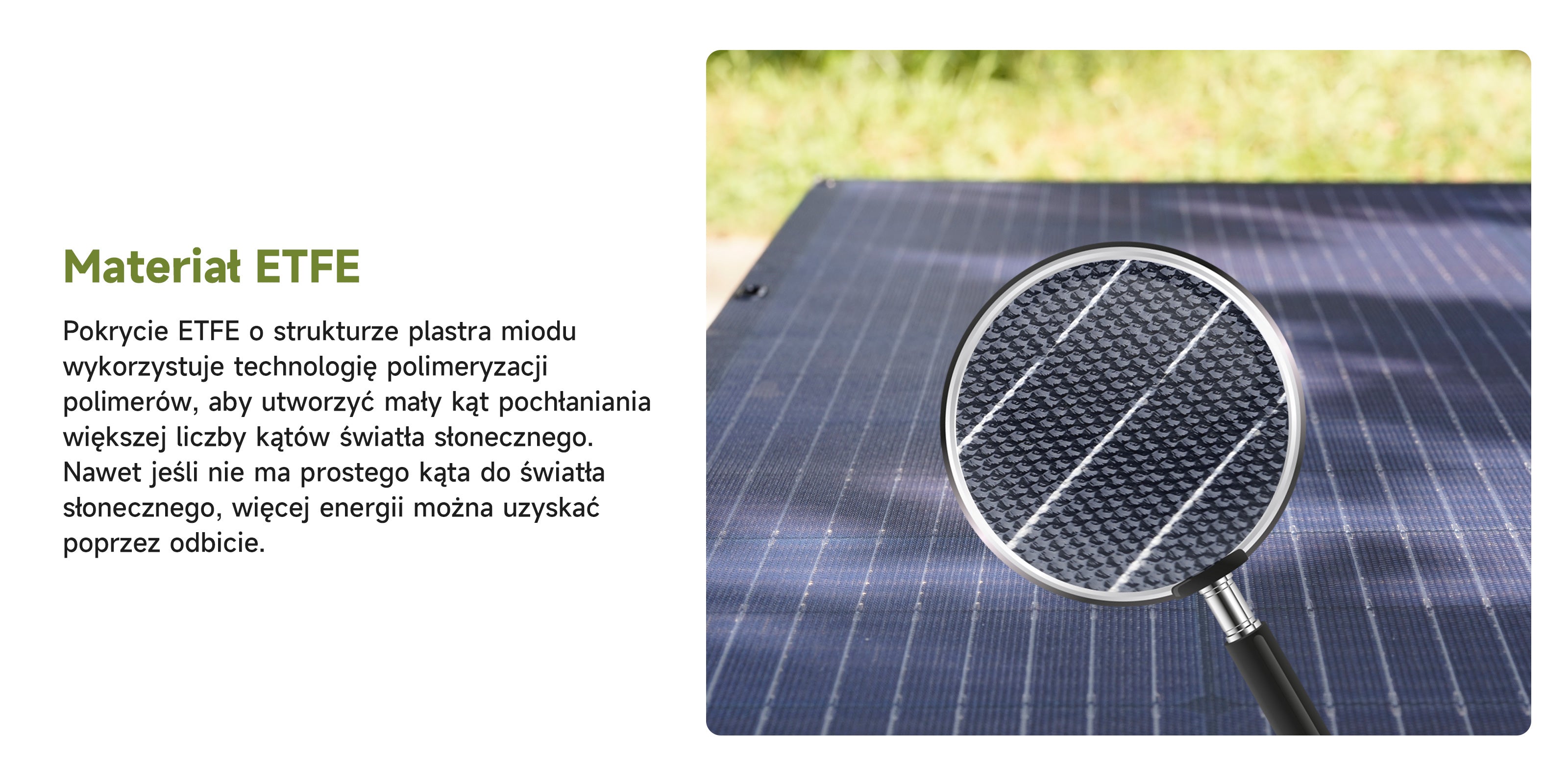 Elastyczne panele słoneczne ALLPOWERS SF200 są wykonane z monokrystalicznych ogniw słonecznych, których współczynnik konwersji może osiągnąć 23%-25%. Na powierzchni zastosowano ETFE w kształcie plastra miodu, a nierówności tworzą refrakcję, aby zbierać światło słoneczne pod różnymi kątami. W połączeniu z portem Solar Connector o minimalnej stracie możesz uzyskać więcej mocy w tym samym czasie. Doskonały wybór dla pojazdów kempingowych, dachów, kamperów, przyczep, łodzi, kabin, szop, namiotów, jachtów.