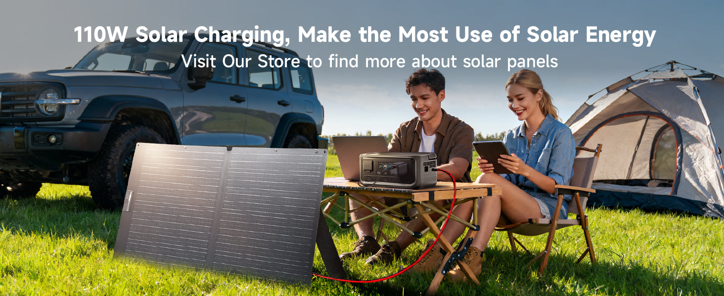 Wykorzystaj moc słońca z VOLIX P300. Zintegrowany kontroler MPPT i wejście solarne 110W pozwalają na efektywne ładowanie panelem słonecznym. Twój osobisty agregat słoneczny na wakacje i camping, który zapewnia ciągłe zasilanie.