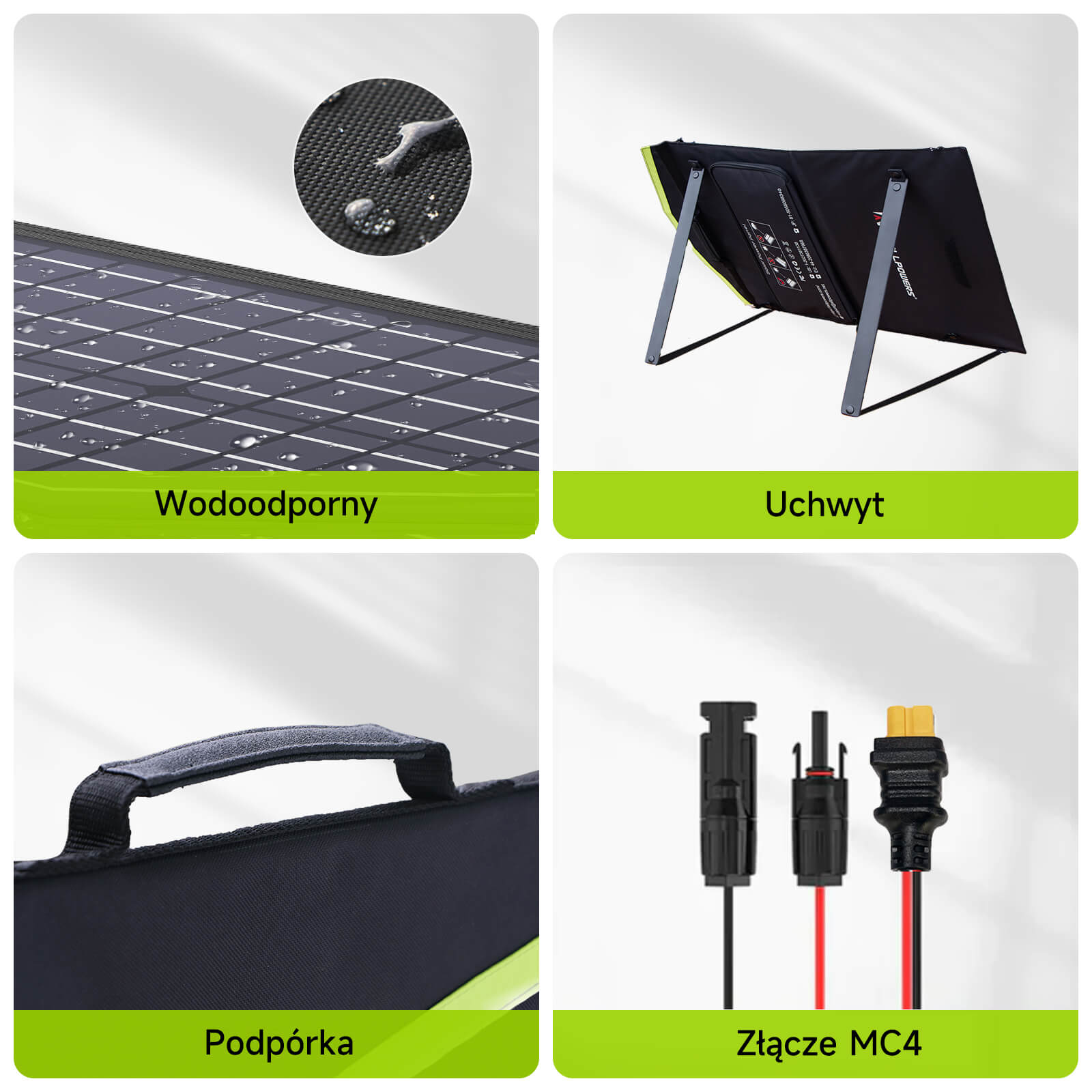 Wyposażony w złącze solarne, panel słoneczny ALLPOWERS 100W jest wysoce kompatybilny z większością generatorów słonecznych dostępnych na rynku. Składany panel słoneczny 100W wykonany z wytrzymałego i wodoodpornego nylonu oraz regulowany uchwyt, aby odbierać najbardziej efektywne światło słoneczne. Technologia ochrony przed zwarciem i przepięciami zapewnia bezpieczeństwo Tobie i Twoim urządzeniom.