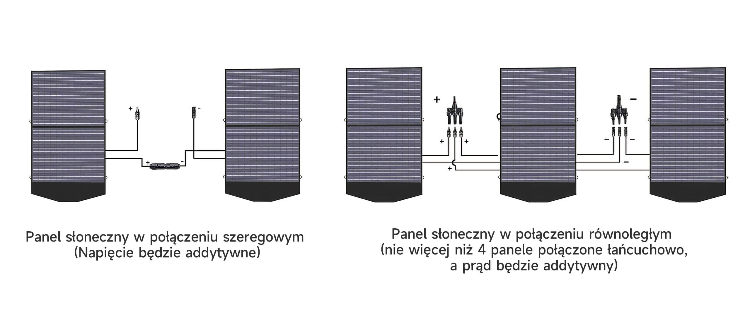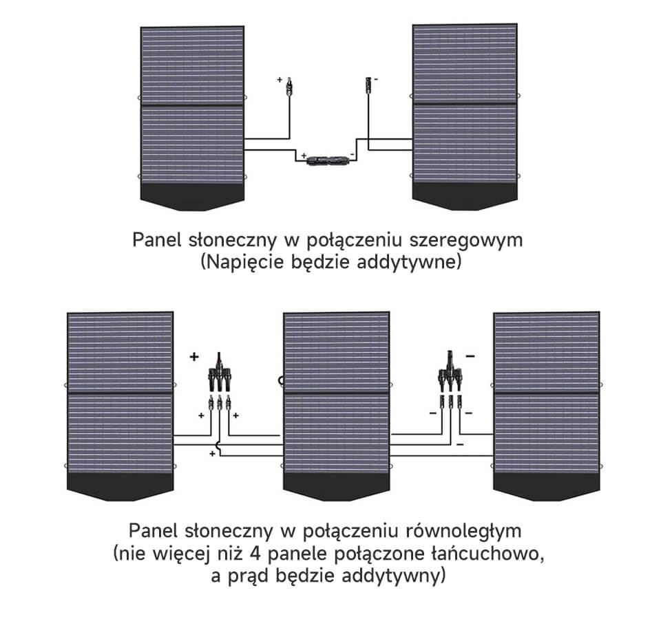 Łącząc wiele paneli słonecznych równolegle lub szeregowo, można uzyskać większą moc i napięcie.