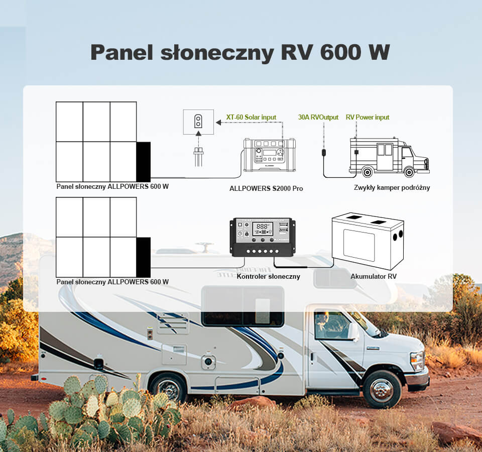 Mocny i użyteczny panel słoneczny 600 W do kampera